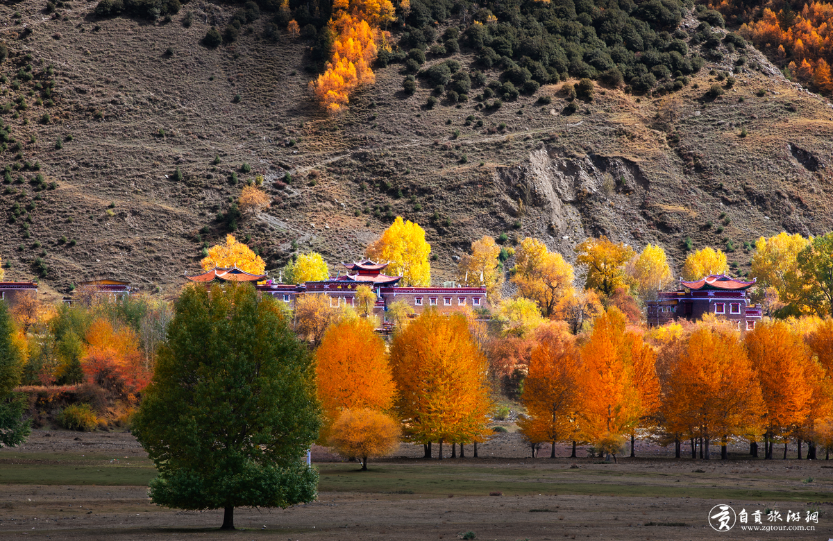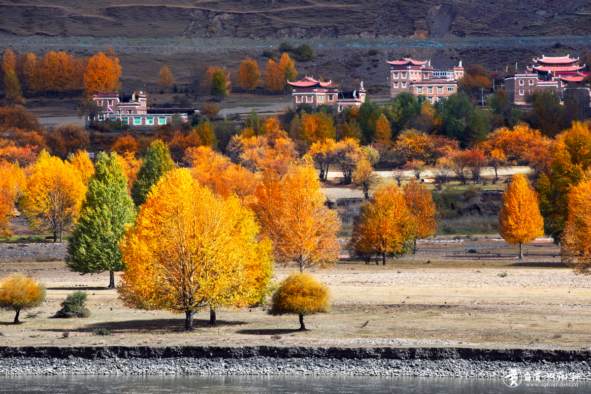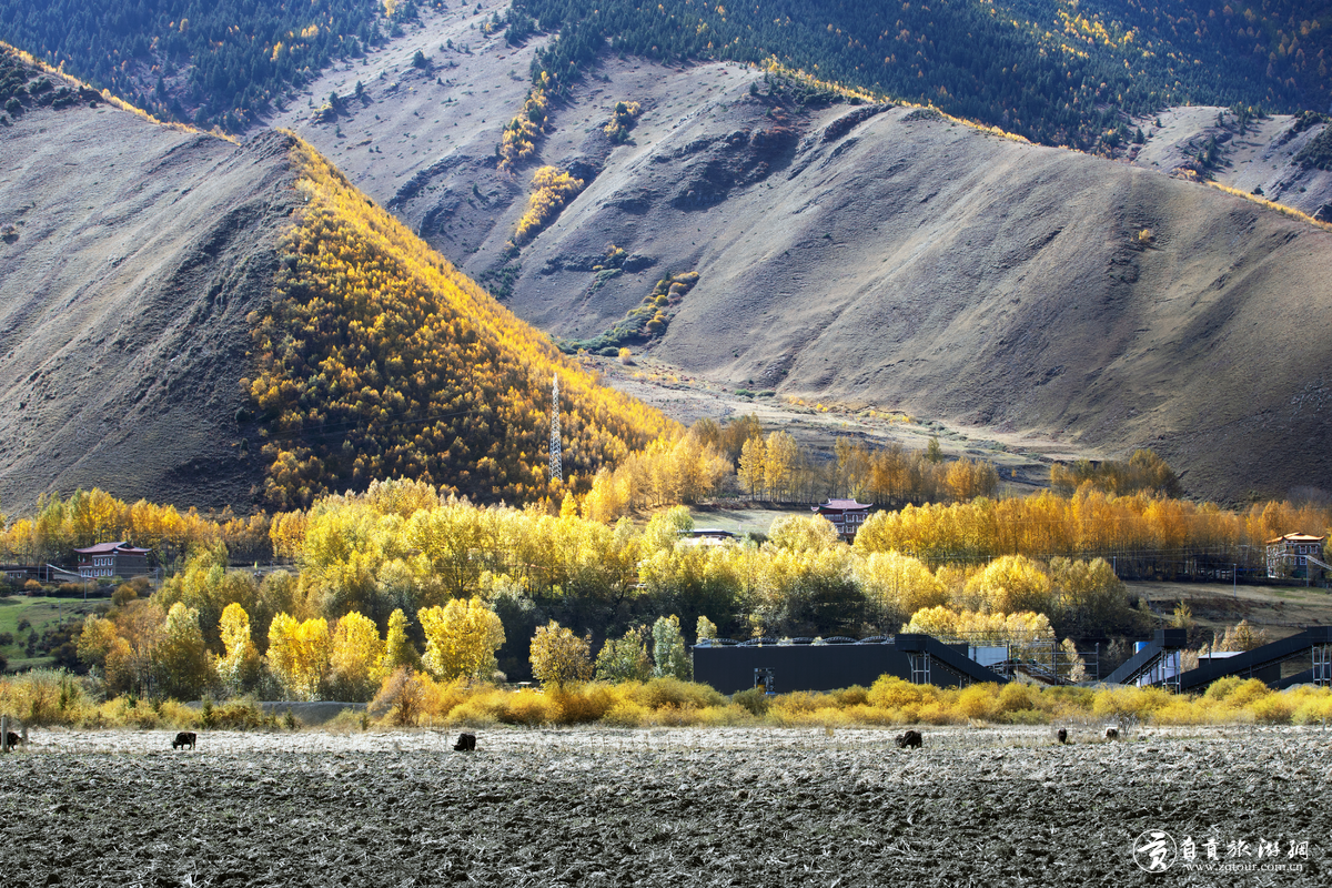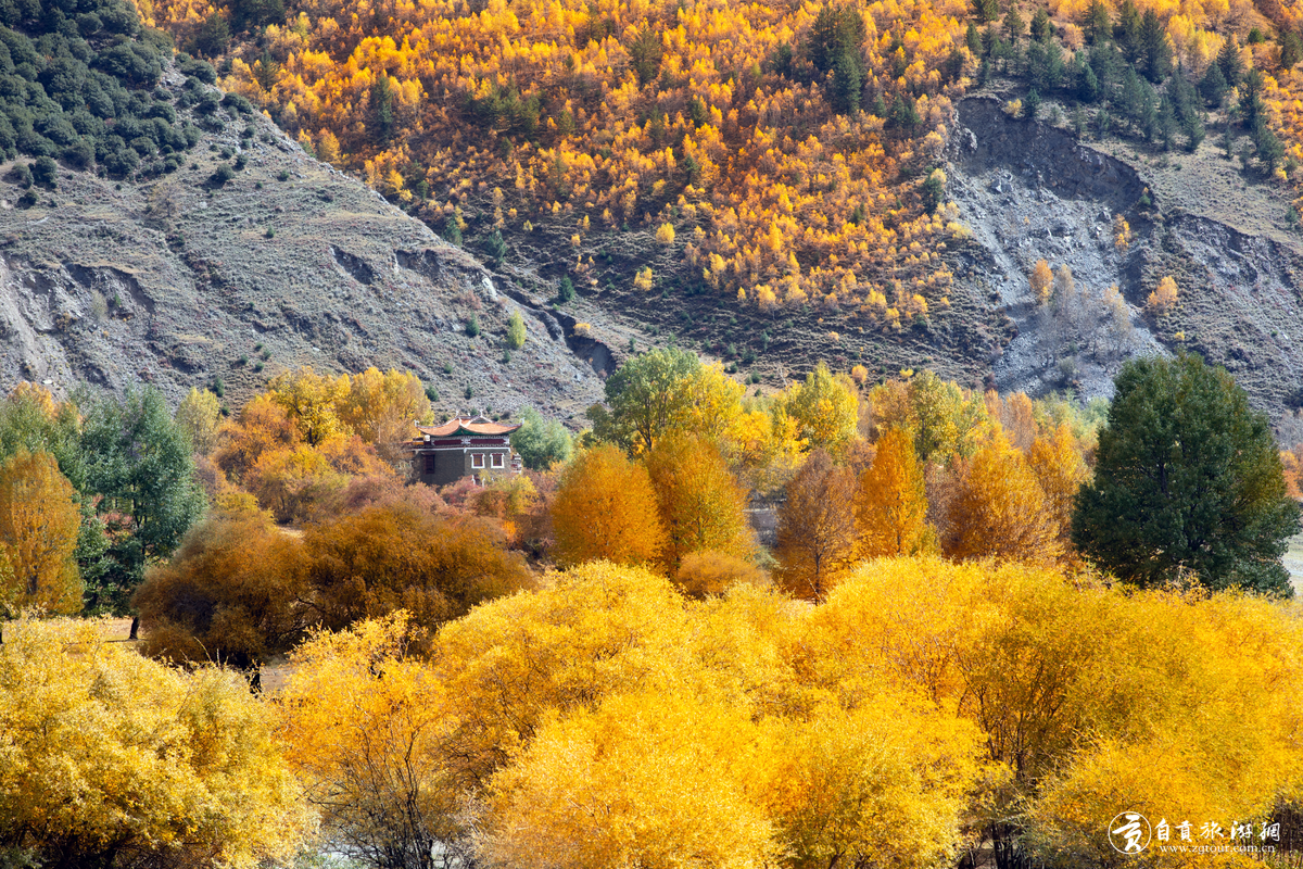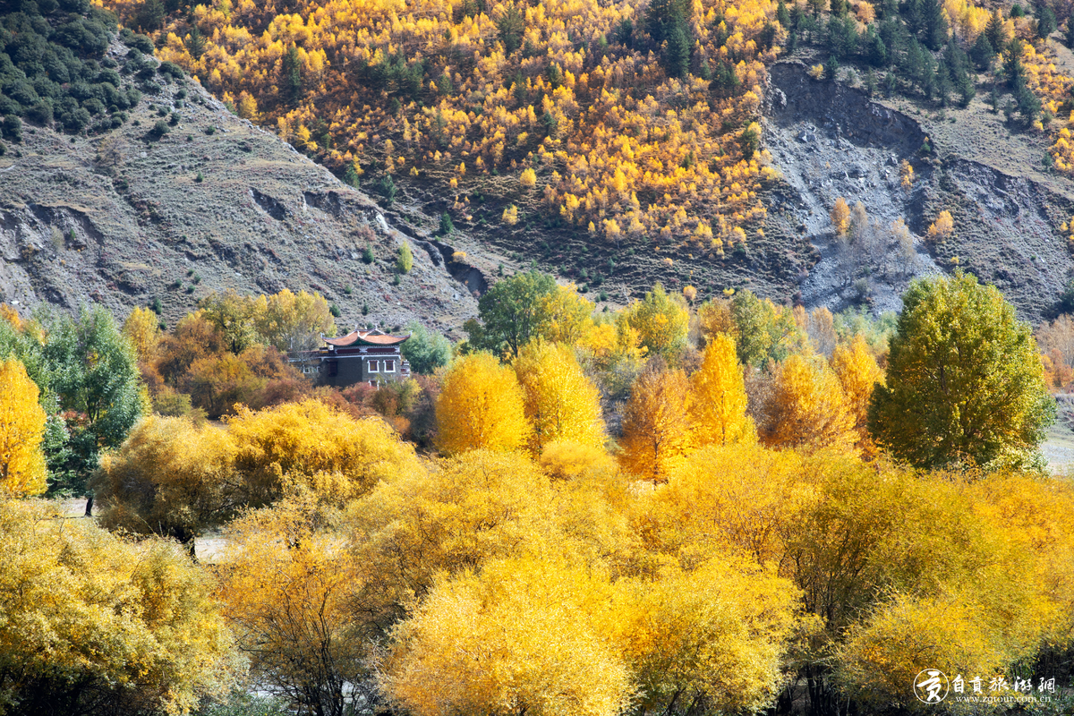 远处,藏式民居错落有致地依偎在山坡上,红瓦朱檐在秋色中愈发鲜明。那些建筑,是藏族文化的凝固诗篇,与自然的秋景相融,成了川西独有的符号。它们静默地注视着季节的更迭,也守护着一方水土的烟火与信仰。这里的秋,不只是色彩的盛宴,更是一种意境的沉醉 —— 是自然与人文的对话,是时光在川西高原上写下的诗意篇章。