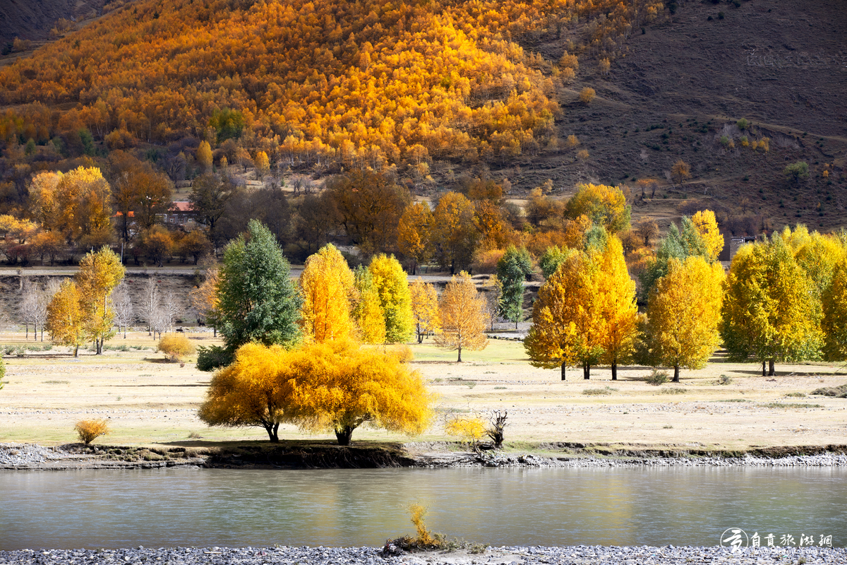 在川西的秘境里,秋意如一幅浓墨重彩的油画,在天地间徐徐铺展。澄澈的河水静静流淌,岸边的砾石似大地的琴键,无声地和着秋的韵律。那一片树林,是秋的调色盘 —— 金黄的杨树肆意张扬,将阳光酿成了琥珀色的酒;翠绿的树影如翡翠镶嵌,在斑斓中留存着夏的余温;还有那橙红、浅黄的林木,层层叠叠,把山野晕染得热烈而温柔。