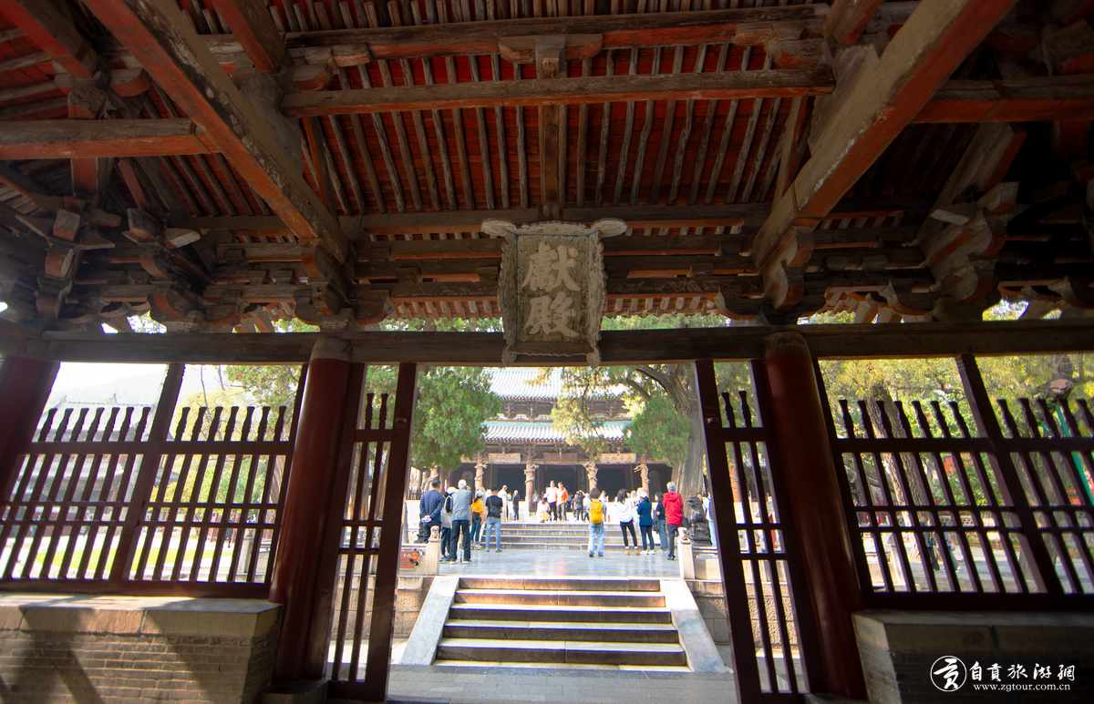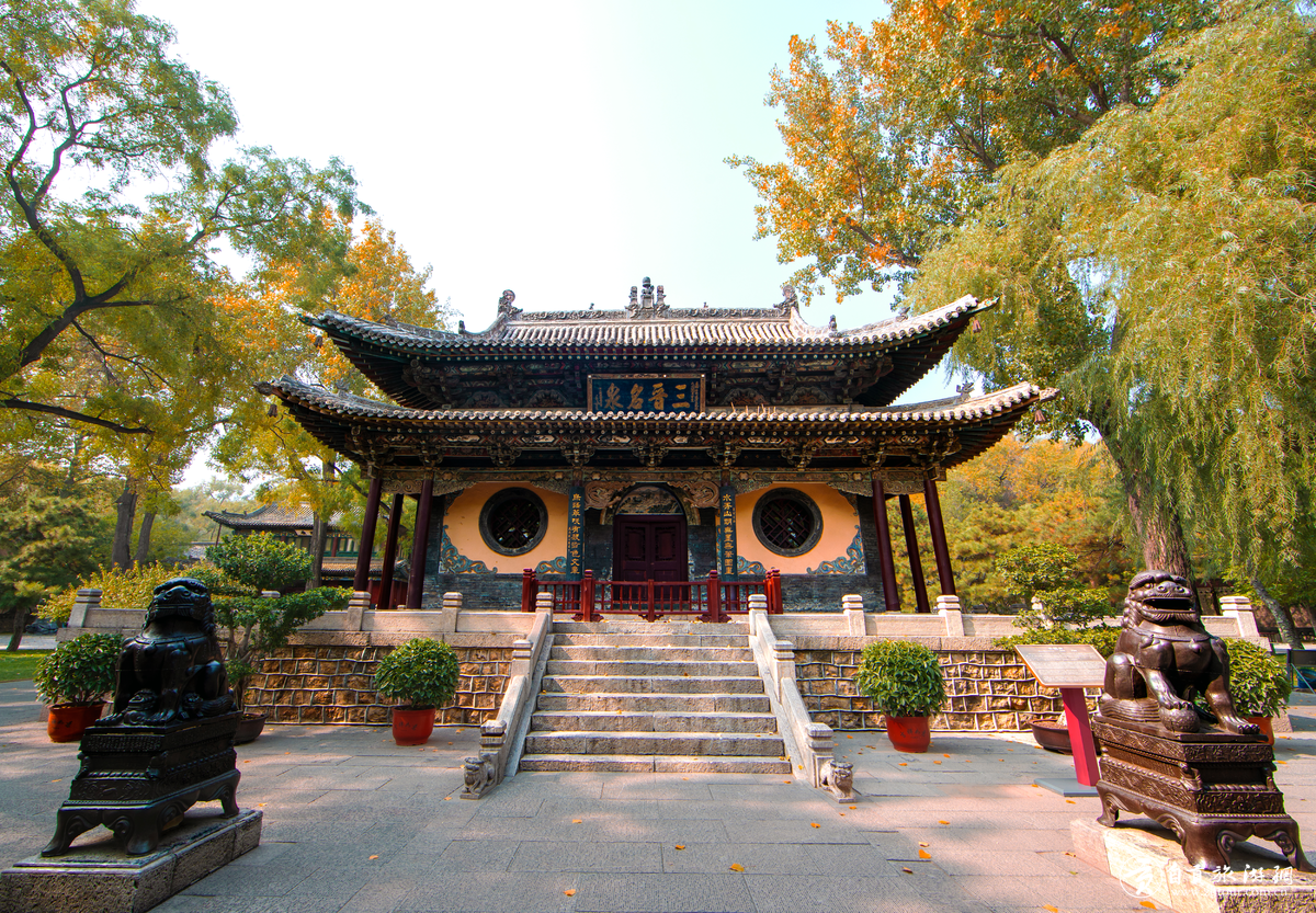 天朗气清,晋祠的朱门在晴空下格外醒目。飞檐翘角的门楼上,绿瓦流光溢彩,与两侧垂落的金丝柳相映成趣。踏上石阶,仿佛踏入一条时光回廊。周柏苍劲的枝干斜探而出,历经三千年风雨,仍在诉说着晋国往事。圣母殿内,宋代侍女塑像浅笑盈盈,衣袂翩然,将千年的温婉凝于一瞬。难老泉的水声潺潺,与秋风掠过柳叶的轻响交织,绘就一幅流动的晋祠秋韵图。这里的一砖一瓦,都沉淀着三晋大地的文脉悠长,让人沉醉忘返。