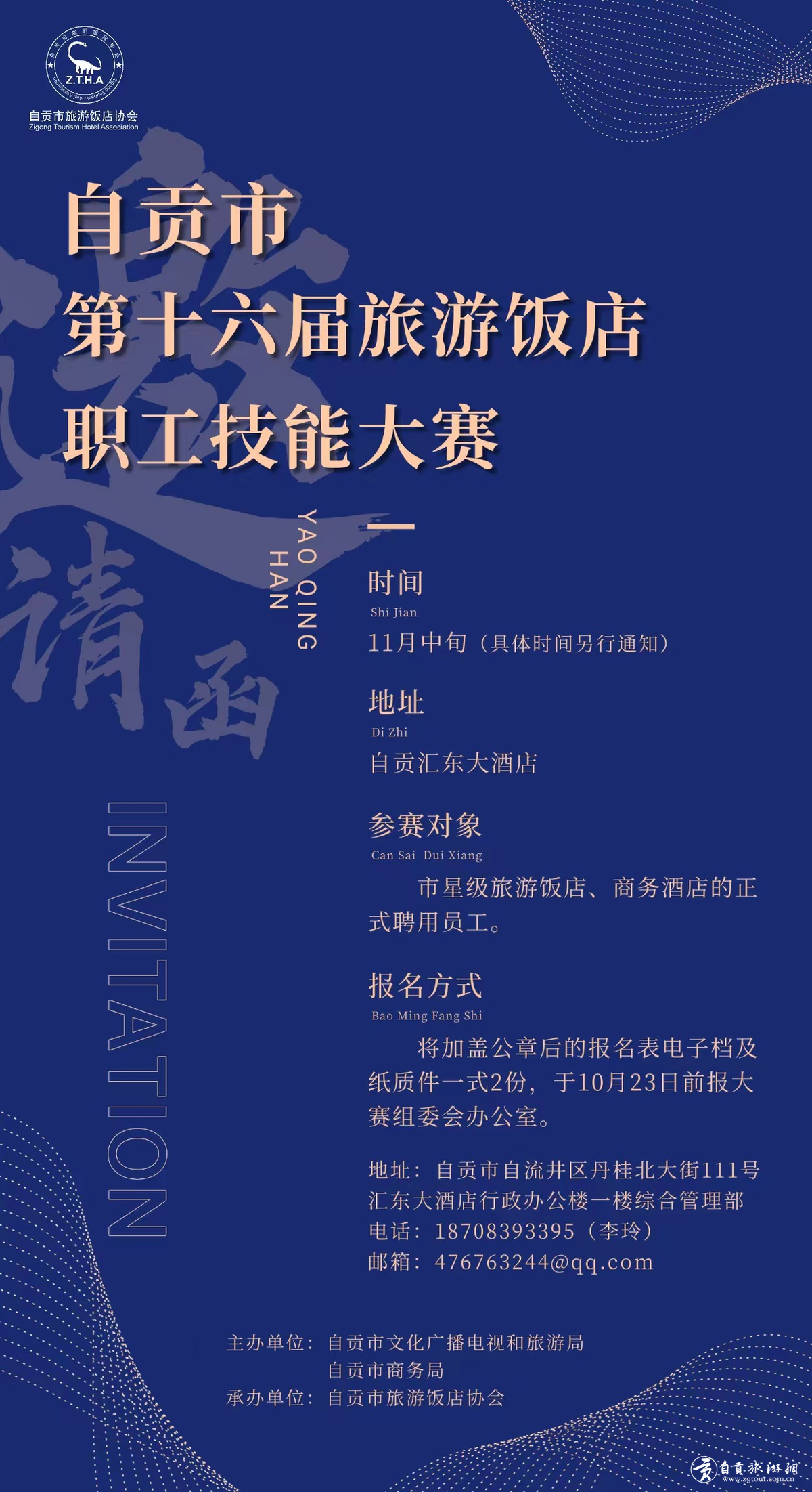 报名啦! 由自贡市文广旅局、市商务局主办,市旅游饭店协会承办的“自贡市第十六届旅游饭店职工技能大赛”火热开启!