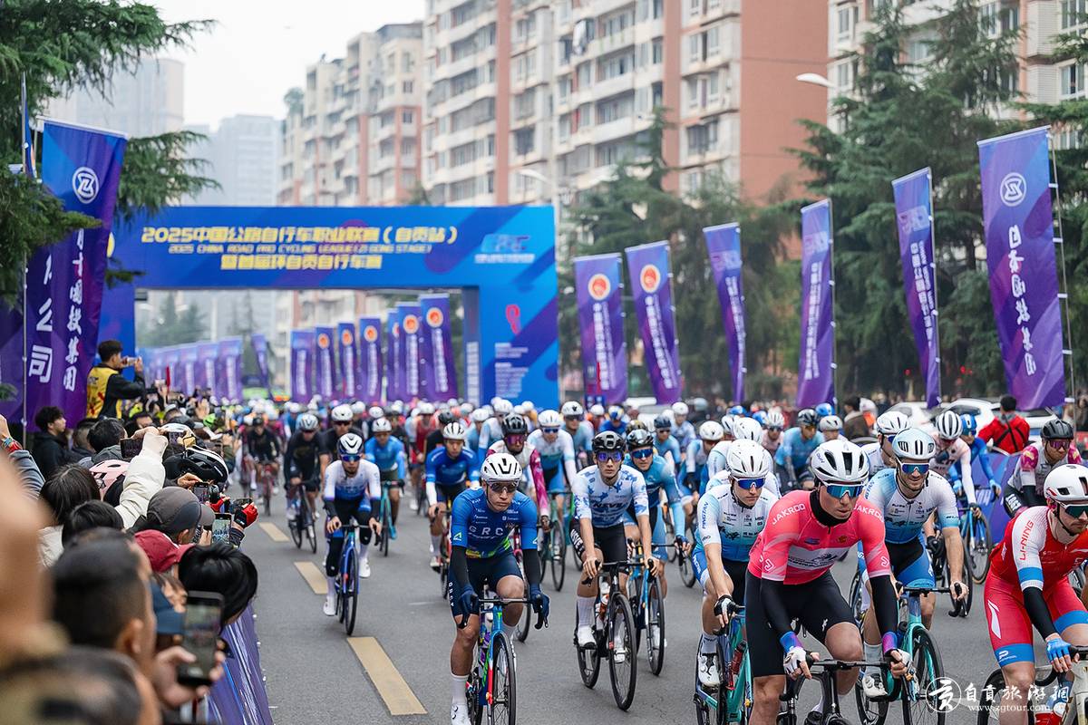 11月30日,2025中国公路自行车职业联赛(自贡站)暨首届环自贡自行车赛在自贡南湖体育中心鸣枪开赛。作为国内唯一的国家级自行车职业赛事,本站比赛吸引了全国20支职业车队的155名选手和1172名业余选手报名参赛,为市民呈现了一场融合“专业竞技”与“全民参与”的体育盛宴。